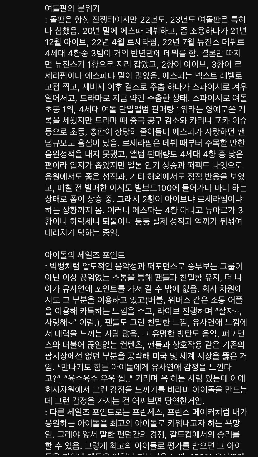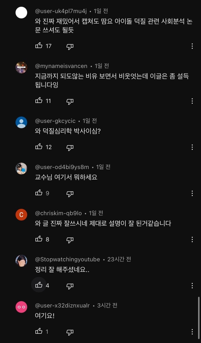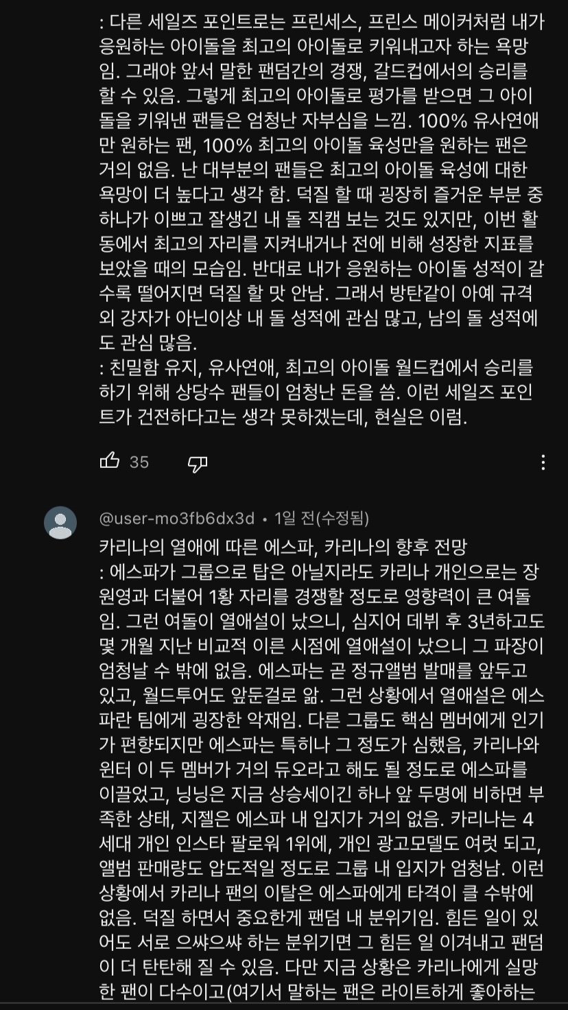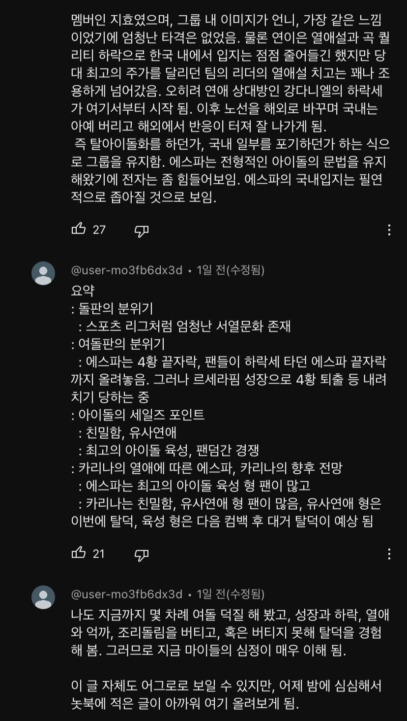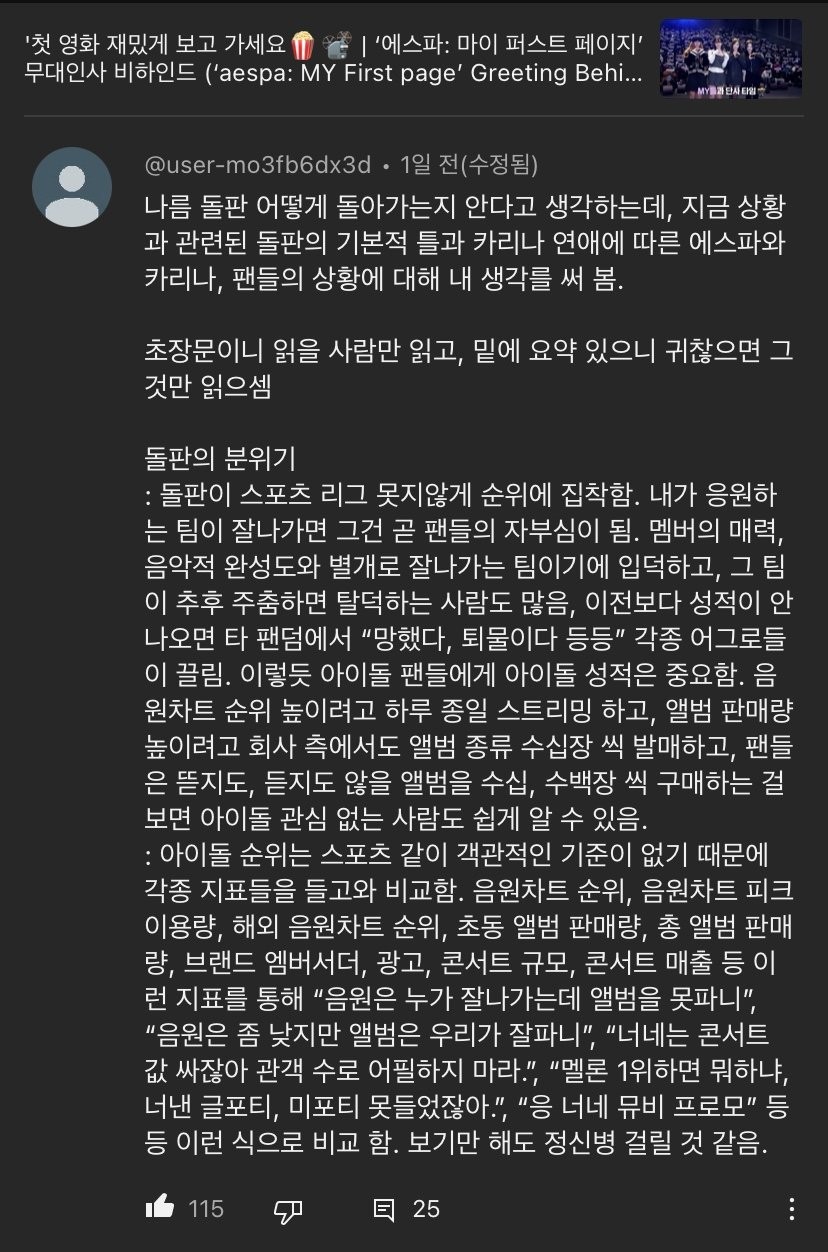 최근 에스파 유튜브에 달렸다던 아이돌 분석글