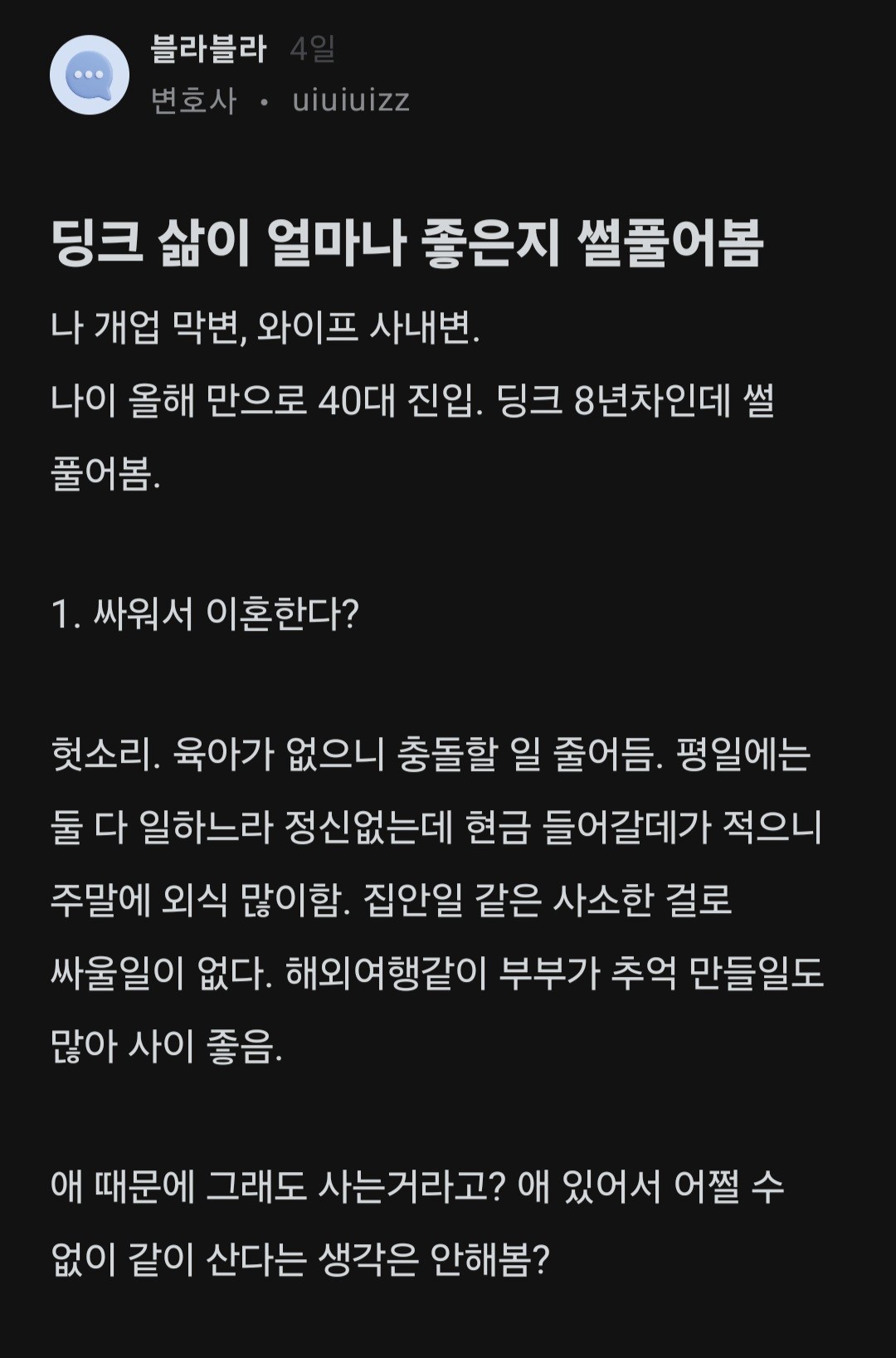 딩크족이 얼마나 좋은지 썰풀어 봄