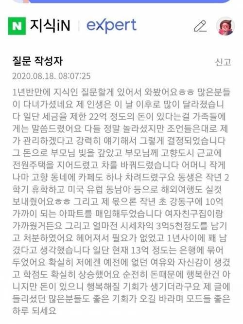 로또 1등 당첨돼서 22억 수령한 대학생, 1년 반 뒤의 후기