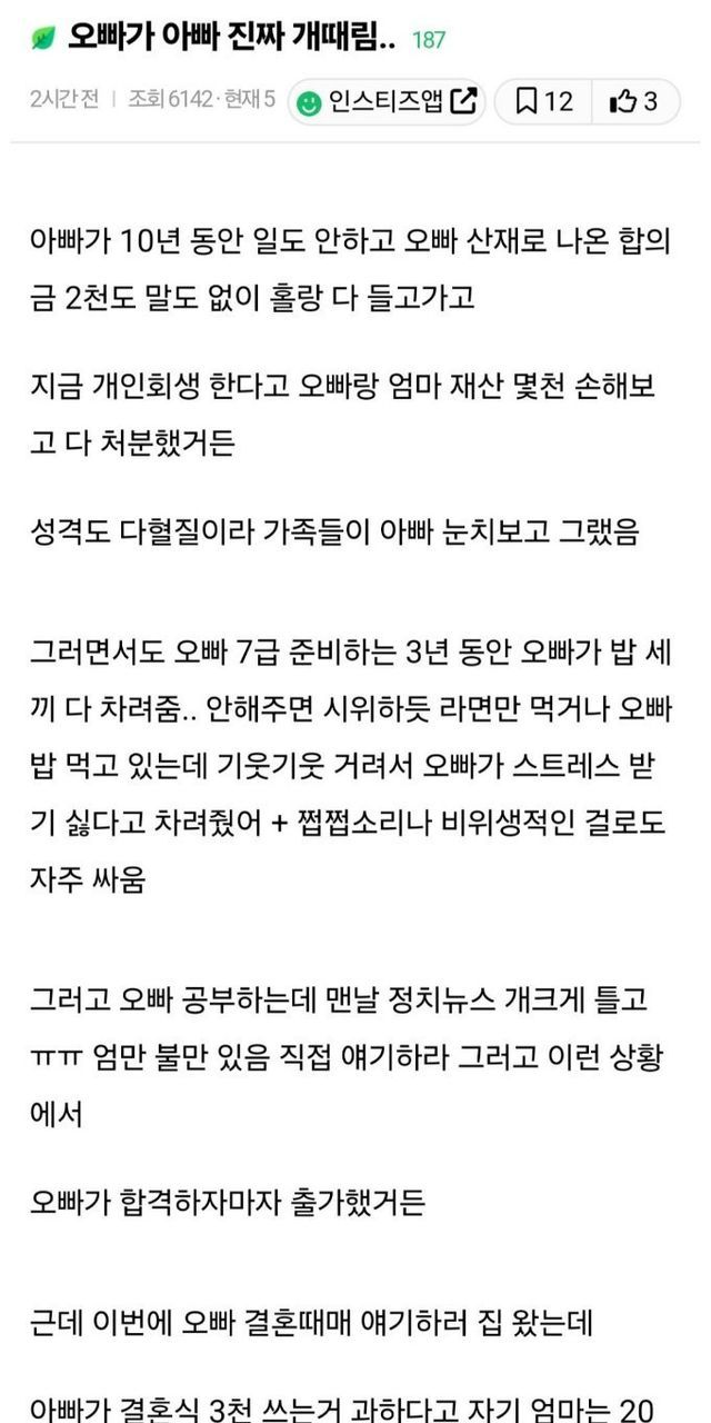 오빠가 아빠를 진짜 개때림..